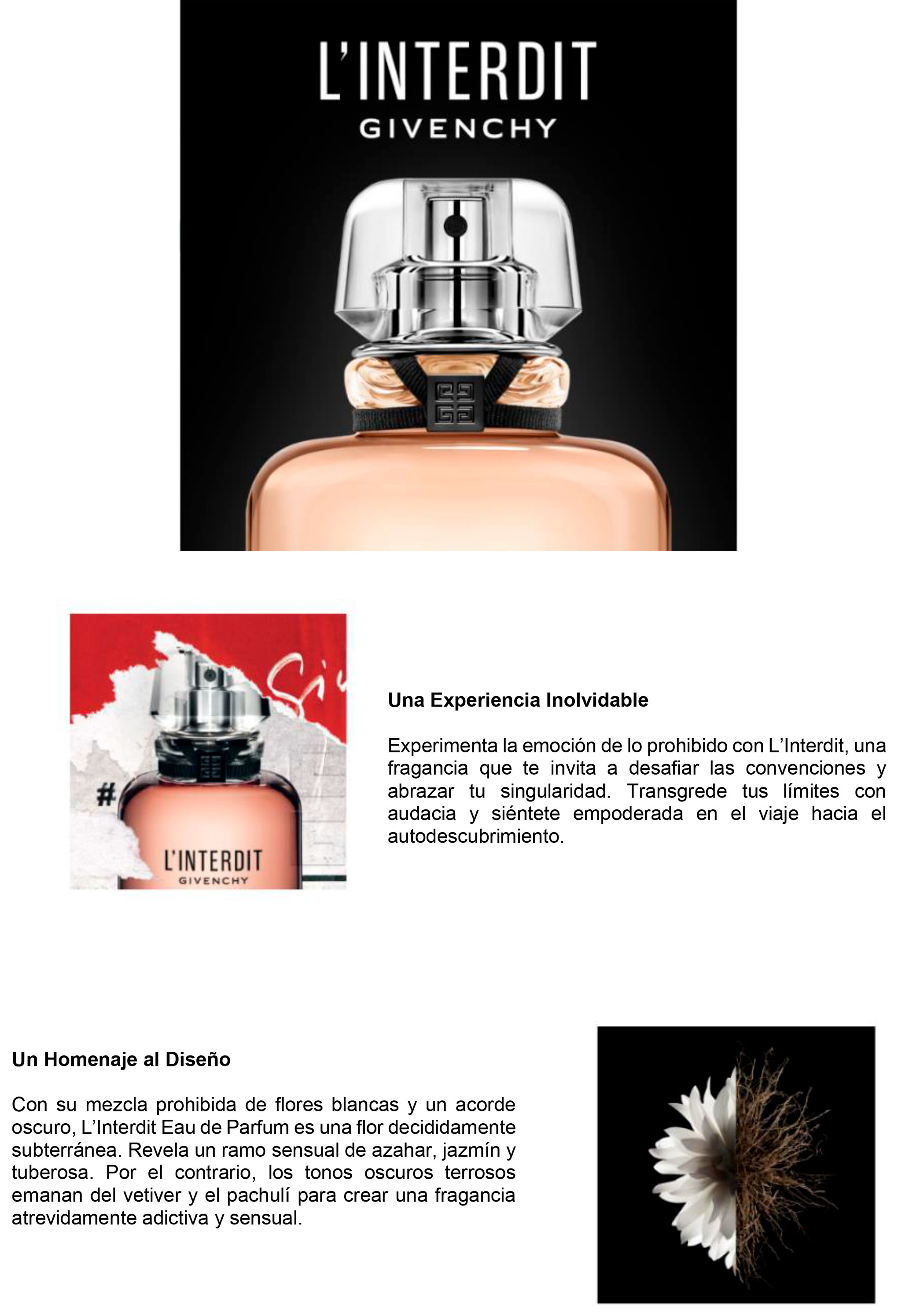 Notas de Salida | Acorde Floral Blanco: Azahar, Jazmín Sambac, Nardo. |